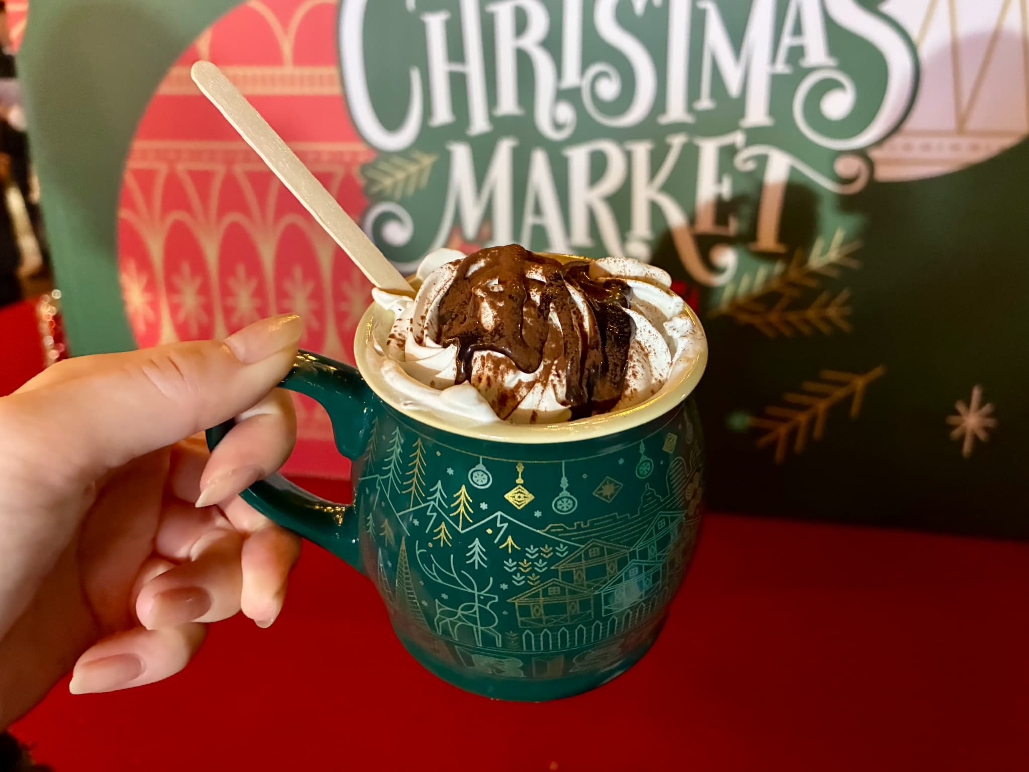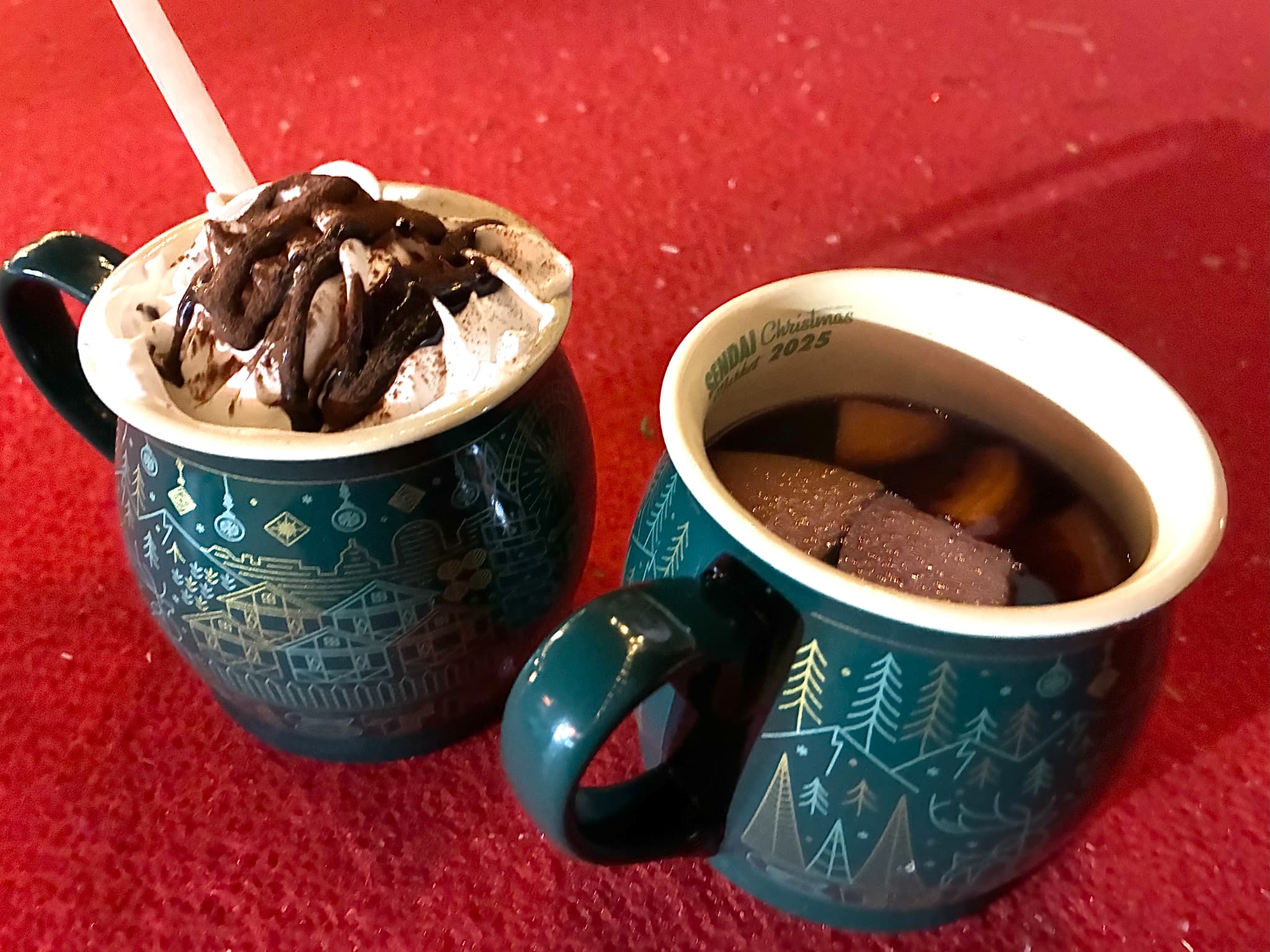 そして、なんといっても注目なのは、オリジナルデザインのマグカップで飲むことができる「ホットチョコレート」と「グリューワイン」。