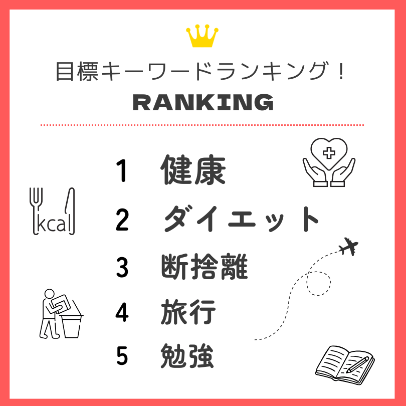 健康に関する目標が圧倒的に多かったです!次にダイエット。健康的に痩せたいというコメントも多かったですね。健康に関する目標は毎年上位に入ってくる印象です。