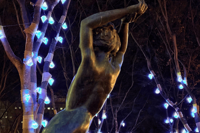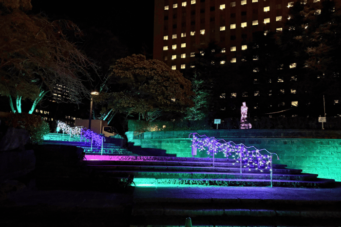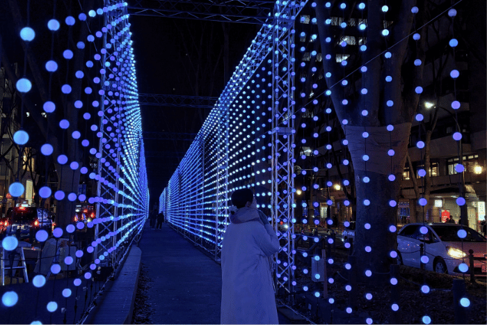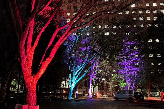 定禅寺通りを抜けて「勾当台公園 いこいの広場」へ。 そこはもう、街の喧騒を忘れるような幻想的な空間が広がっていました。