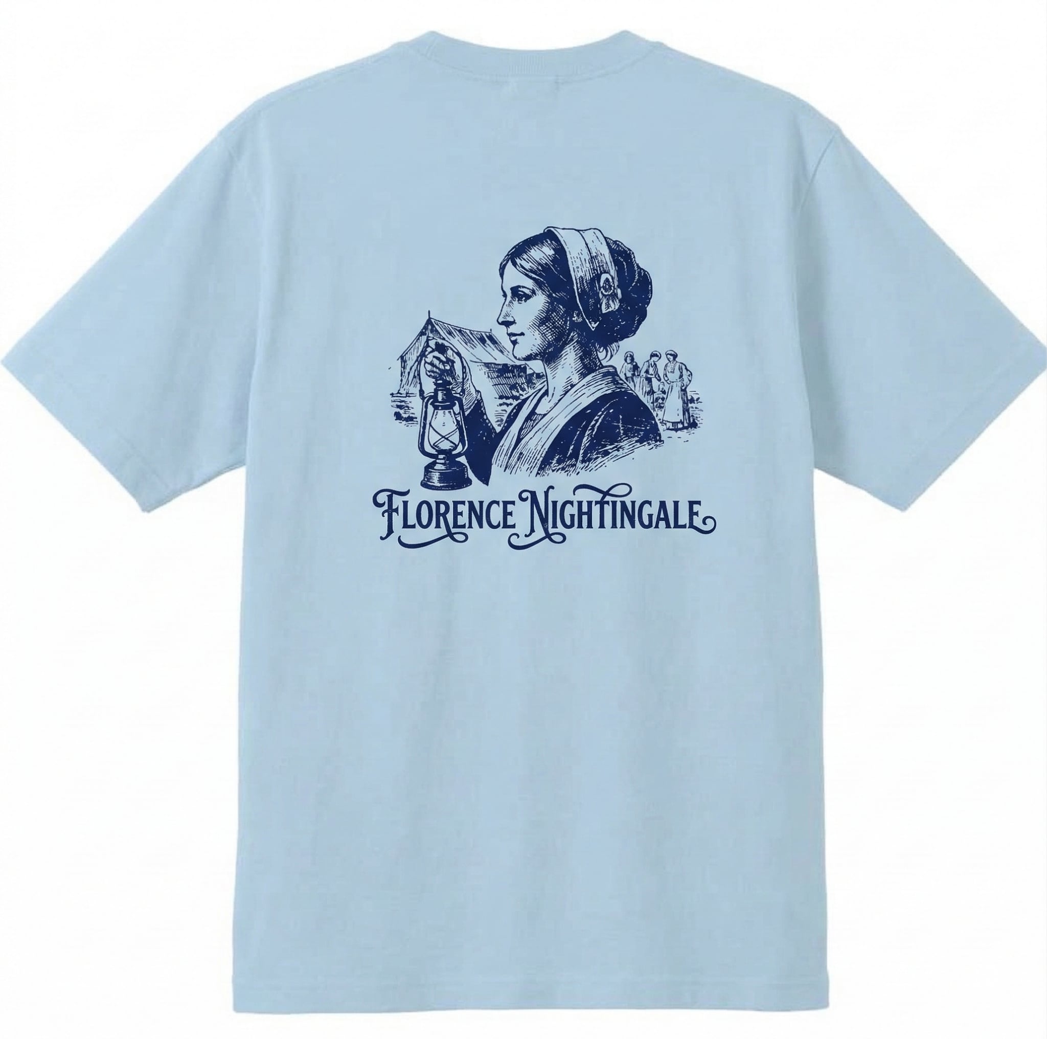 会場では、パネル展示のほか、オリジナルデザインの「ナイチンゲールTシャツ」などのグッズ販売も行われます。 ナイチンゲールは、病でベッドでの生活を余儀なくされてからも、統計学や衛生学など社会改革に大きく貢献しました。「病気は治療できなくとも、社会は治療できる」という主催者の想いが込められたTシャツです。